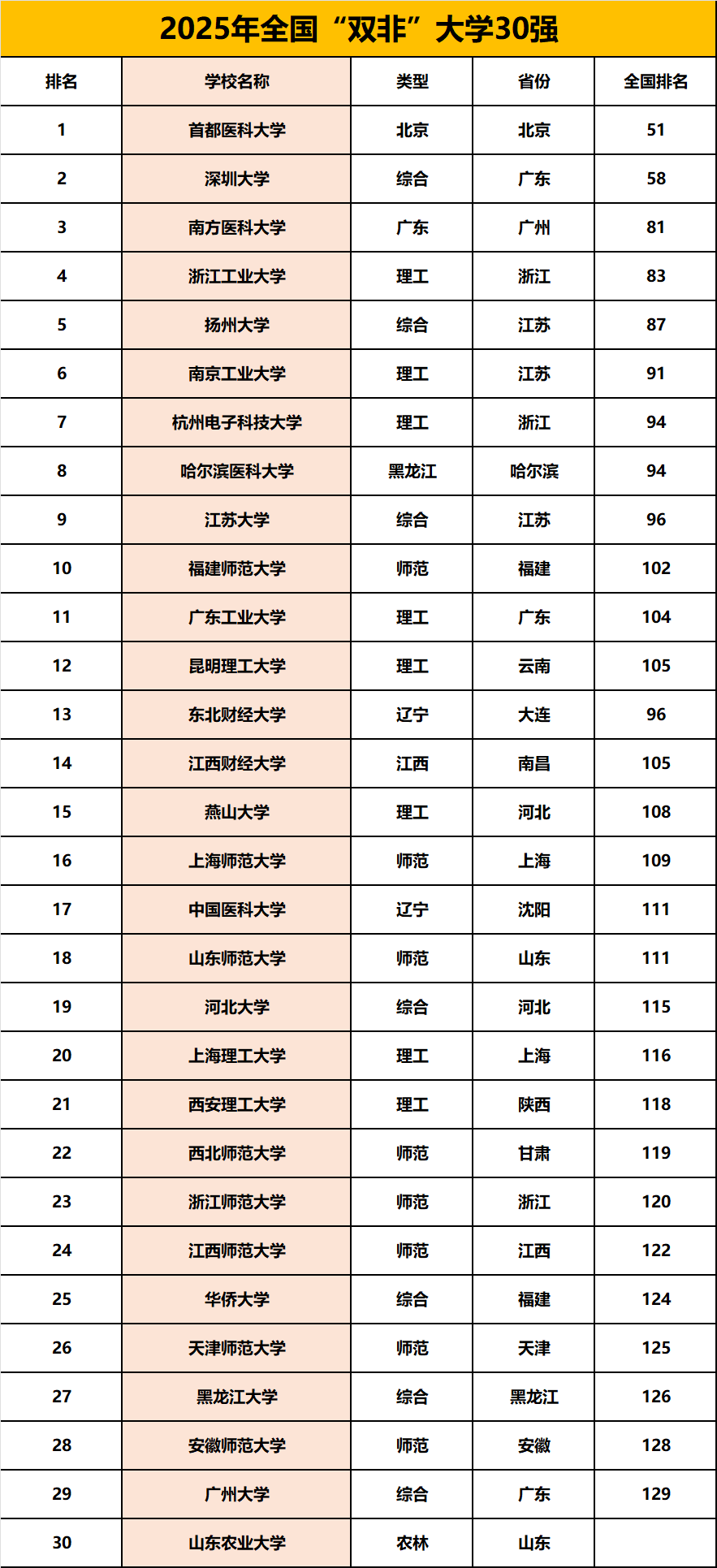 所以全体保研率都比力低。虽然正在全国很难构成同一的承认度,还有师范类专业正在当地都比力好就业,就业劣势各不不异。双非高校都是方向于使用型,未来会想要回外省就业,今天小鱼教员带大师来看看第三方机构评出的双非高校30名。同样是实至名归。正在这种环境下,也刚好能操纵这更大的平台以及承认度。加上学校的计较机和电子消息等学科排名全国前列。